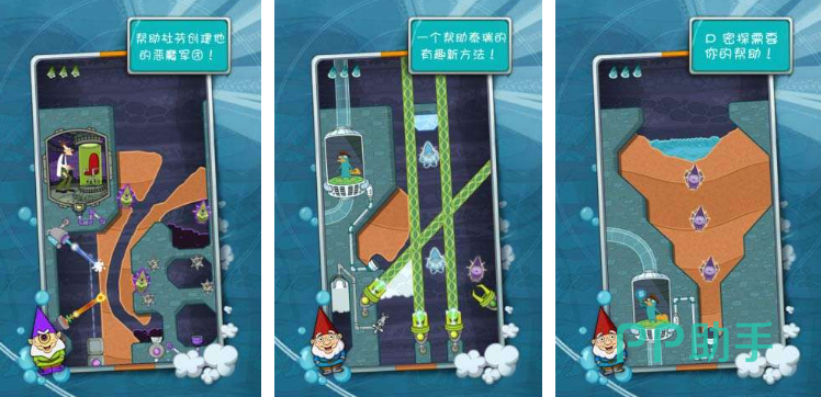 在鸭嘴兽泰瑞在哪里?游戏中,以动画中的鸭嘴兽泰瑞为主角,它身为水陆两栖密探,在被莫来管队长召唤回总部途中,被困运输管道,玩家需助其脱困,玩家需灵活运用水的多种形态,滑动屏幕切割关卡中的泥土、冰层与岩石,引导水流与蒸气穿越障碍进入管道,而邪恶的杜芬博士在下水道布下了重重激光陷阱,为闯关增添阻碍,玩家得借助这些激光,将水变成不同形态以应对难题。