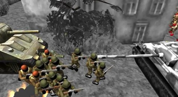 你将指挥一支由简易士兵组成的精锐部队投入激烈战斗。游戏提供多样化的作战单位供你调遣,每种兵种都配有独特的武器装备和战术特性。通过不断击败敌军积累战备资金,你可以持续强化自己的武装力量,在攻防转换中突破对手层层防御工事,最终取得战役胜利。