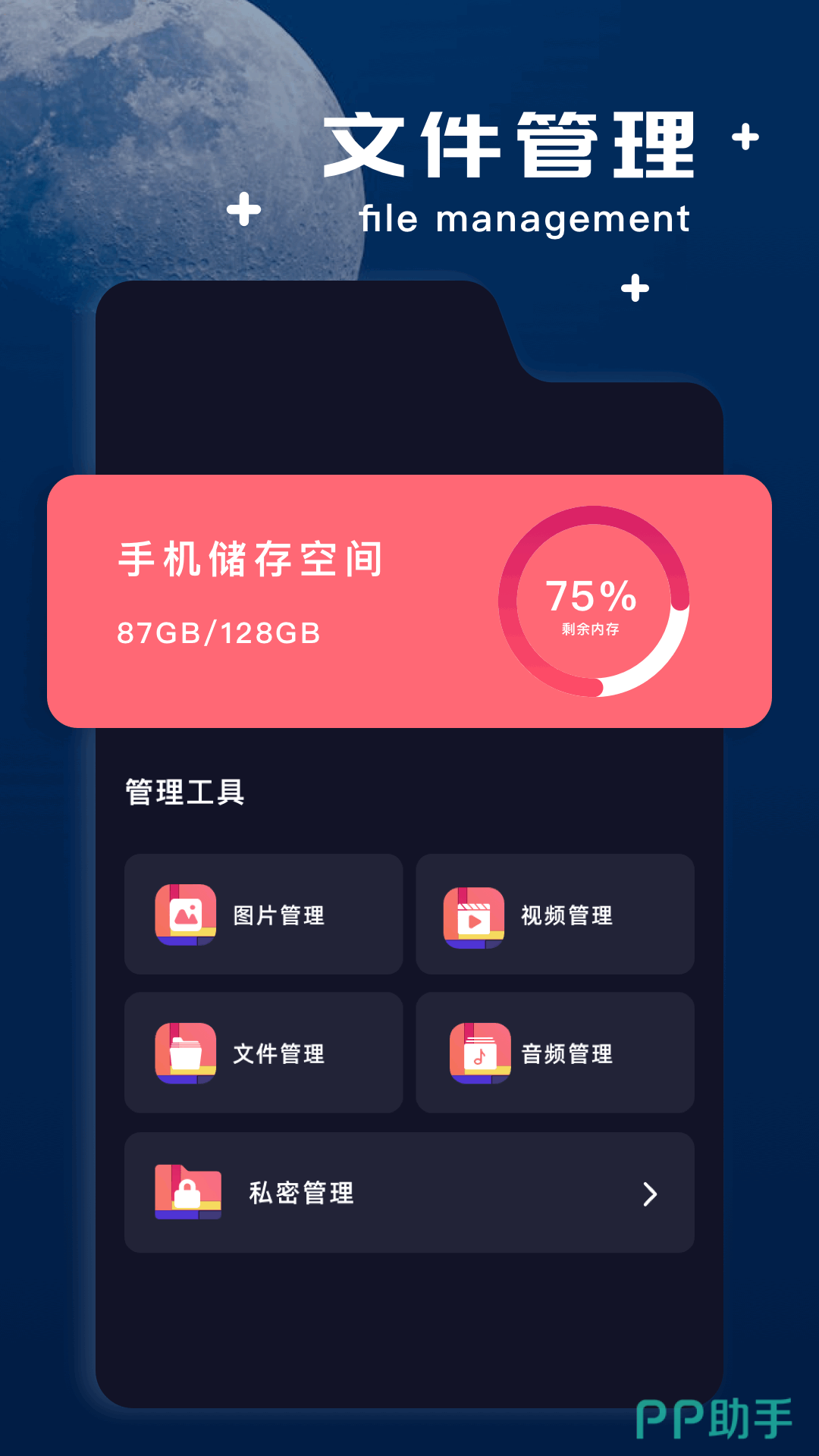 用简单等方式高效的管理各类图片、文档、视频,通过使用密码加密的方式,拒绝陌生人随便打开相册和视频,保护个人私密照片和视频,同时文件管理器还增加了文件清理和解压缩功能,轻松管理手机内的文件。