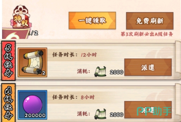 在领完这些奖励之后,玩家通常会获得一定数量的招募券,此时尽情抽卡就可以了,抽卡券在游戏中的价值就在于及时转换成提升战力的资源,所以有就用,不要刻意留着。当招募券用完之后,玩家可以点击忍者集训功能,将多余用不上的忍者进行一键升星操作,提升整体战力,战力提升后,就可以开始日常刷本了,玩家先挑战最新能够挑战的副本,然后使用一键扫荡功能,快速获取副本奖励。
