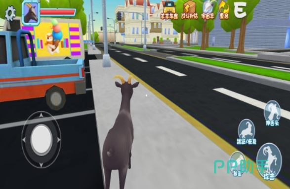 模拟山羊能让各位在一座沙盒世界里扮演山羊,并且能像真正的山羊那样奔跑、用头上的角去顶翻任何事物,让自己在城市里兴风作浪。这部游戏的上手难度很低,它会有相应的提示来让各位前往既定的地点进行任务,只要完成就能拿到各种奖励来让自己变得更强。当然,若各位想更自由一些,也可完全不跟任务走。