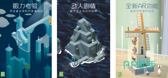 纪念碑谷是款拥有绝美画面的纯单机解谜益智类神作,艺术品一般的音画和灵活操作性质都是亮点,将几何学融合其中打造的神奇建筑看上去十分精致,清新美观的画面跟悠哉的气氛相辅相成,奇幻的纪念碑迷宫地图等待着玩家们尽情游荡,利用视觉错位和点触式互动方法解谜的方式休闲益智。