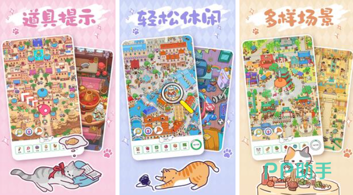 本作是款为视力强的玩家准备的特殊找东西游戏,以可爱的小猫元素为主题拥有多种多样的地图,玩家需要在这些地图中疯狂寻找任务目标,极高的互动性和丰富的地图设定大大增加了耐玩性,可以跟小猫进行互动让其帮助自己完成任务,上手也容易但考验眼力让游戏整体显得更加休闲益智。
