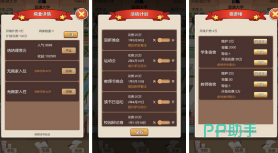 以文字经营为主题的热门手游,化身成为校长,通过管理运用学校完成经营,提高教学质量来吸引到更多的学生,维持学校发展。作为校长的你,一定要学会精打细算,每次支出都要详细平衡学校的财务状况,兼顾教学设施,比如图书馆食堂,这样才能够让学生的满意程度更高。