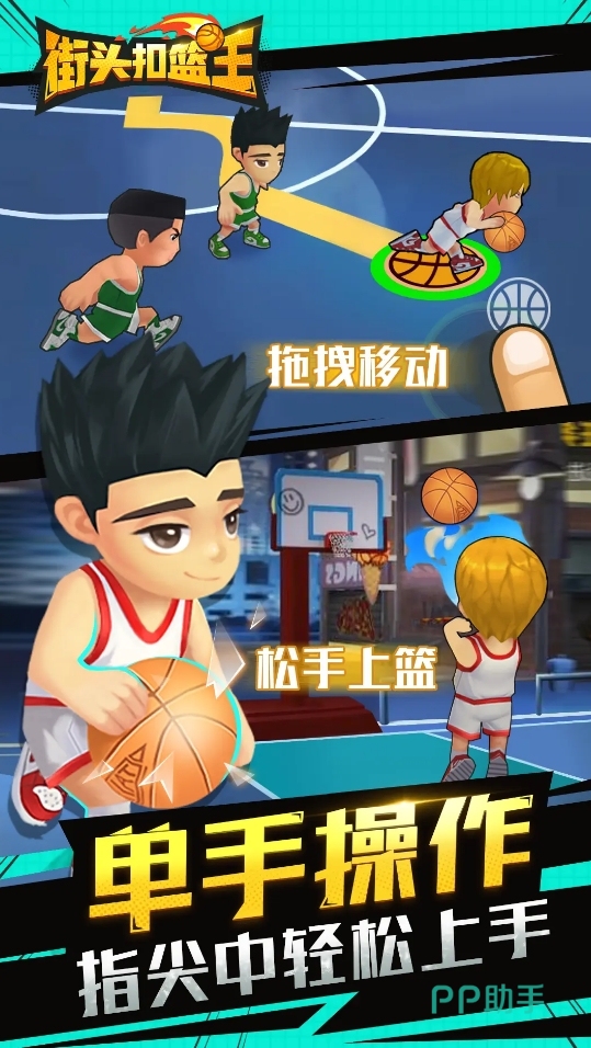 它是部卡通风格的篮球游戏,上手难度也低,而且只要距离合适就能在起跳后直接扣篮,让每位玩家都能在这部游戏里体验到暴扣篮筐的痛快。同时,游戏也有着很自由的竞技玩法,能让各位在简化后的篮球规则下进行一场趣味竞技,极快的匹配速度也不用等待太久,使得玩家们可在任何碎片时间里用这部高趣味性的作品来放松。