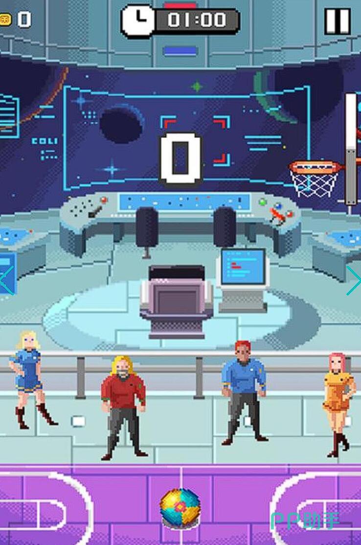 复古像素风+动感电音BGM,瞬间穿越90年代街机厅!玩法简单上头——划屏蓄力+时机释放:在篮球下落的瞬间点击屏幕,配合节奏连击能触发“三球连发”特效。创意道具让挑战趣味十足:银球必中篮板、小鸟附加跟踪弹道,而拉拉队出场时连续进球分数翻倍!90秒限时模式最适合地铁通勤来一局。
