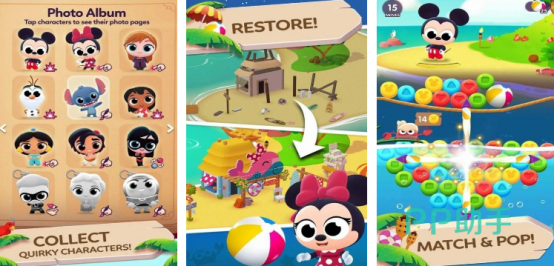 根据官方正版授权进行创作,这里也将会看到很多耳熟能详的人气角色,比如米奇等等。游戏的玩法操作特别简单,以泡泡消除玩法为核心,通过精准瞄准以及合理规划的方式,就能够成功发射泡泡,还可以看到连锁的爆炸画面,设立了上千种不同的挑战关卡,还有很多百变道具可以帮助您顺利闯关,此游戏在此基础之上又融入了经营养成的元素,可以通过收集培养的方式拥有合作伙伴。