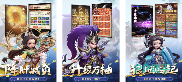 作为放置卡牌策略类型的游戏,需要玩家讲究策略性,并且要随时随地面临随机生成的关卡。这时候玩家为了提升实力需要招募三国时期的武将,然后再培养武将,将其组建成强大的阵容,其实游戏当中还会涉及到合体技能,能够让玩家面对挑战的时候,可以随机获得高品质的武将碎片,然后再将其合成为武将,可供玩家强化阵容。玩家如果想要跨服竞技,那么他也能够满足玩家的需求。
