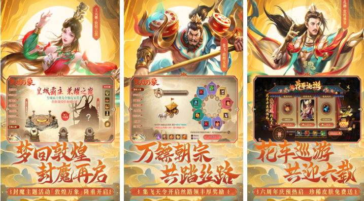 梦三国手游基本复刻同名端游的各类玩法与经典操作,画风刻意怀旧给人沉浸于三国时代推塔的既视感,魔幻三国风的UI带来的观赏性也是与众不同,角色设定方面跟三国剧情故事相得益彰,加入了更多全新PVE模式让这款推塔神作更有魅力,与敦煌和西游元素进行的联动也推出了更多模式哟。