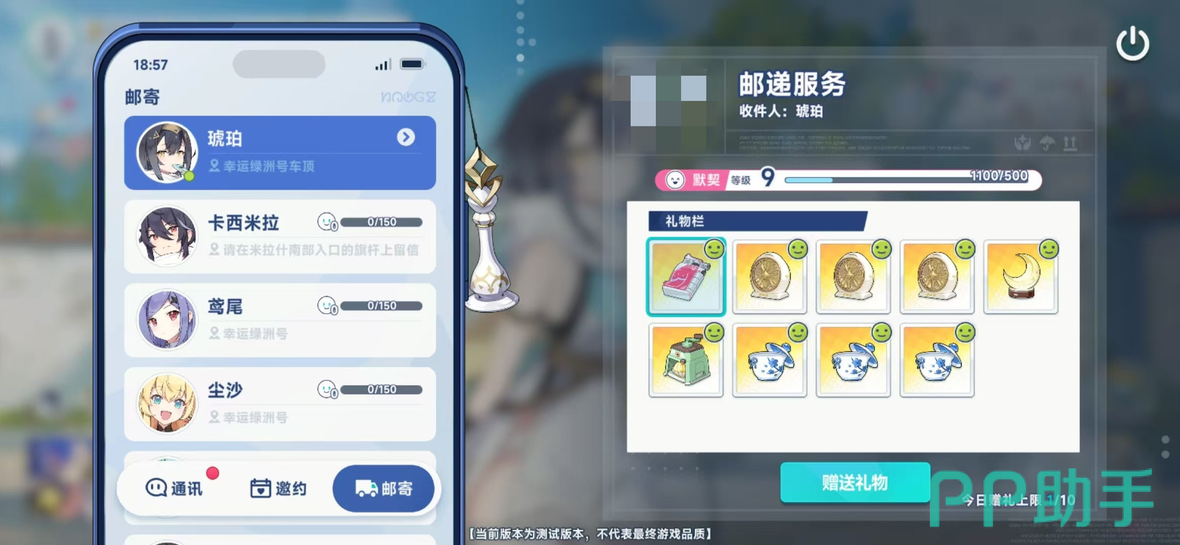 除此之外还可以通过送礼的方式来提升,给指定的角色邮寄礼物,也是可以获得大量好感度。注意不同的礼物所提升的好感度是不同的,例如蓝色品质的礼物,可以提升200点,金色品质的礼物,就可以提升1000点。通过扫荡爬楼,可获得神器许愿蛋,然后在材料合成系统中就能进行随机礼物的合成。大家在送礼的时候要注意,尽量给自己喜欢的角色使用带有笑脸的礼物,这样礼物可以获得更好的效果。另外游戏中的很多开服活动以及限时活动也会赠送礼物,注意多参加活动搜集起来。