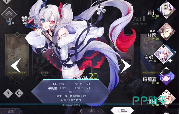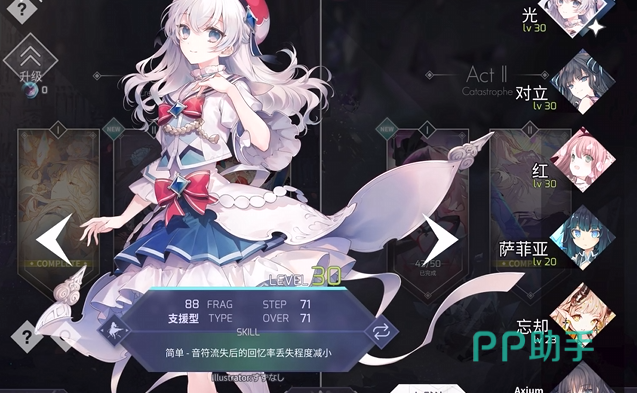 首先就是白姬,这个角色的能力十分平衡,而且小伙伴们只要花钱买divided heart曲包就可以直接解锁了,这个角色的技能是能让大家在玩儿经典曲目的时候多得到10点残片。虽然开始小伙伴们看不上这10点,但是如果这个角色能升到满级的话,大家就可以直接得到100件残片加成了,轻松打出高分。