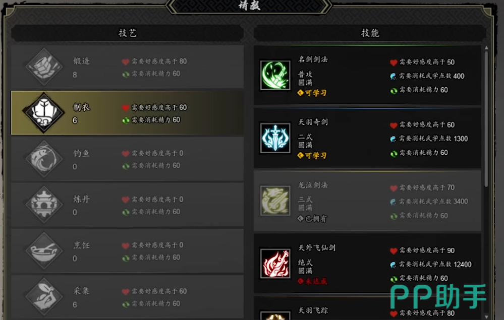 此外,欧阳衡的好感度也是提升制衣技能的重要条件。与他保持良好的关系(好感度大于60)能够让你顺利请教更多制衣技巧。如果好感度较低,你将无法获得有效的经验,因此在提升技能的过程中,要特别注意与欧阳衡的互动和关系维护。