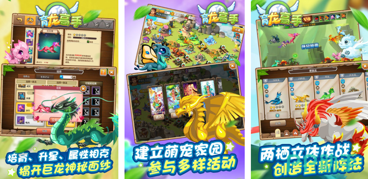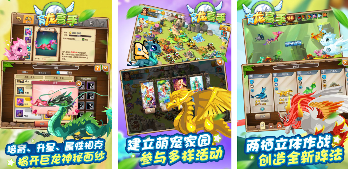 这是一款以“龙蛋孵化+龙族进化+龙战竞技”为核心的模拟+对战类游戏,采用2.5D卡通风格画面,色彩绚丽且细节丰富。场景设定遍布空中花园、火山地牢、冰封大陆等奇幻区域,不同环境中的龙类形态、技能特效与背景音乐均有所区分,呈现出充满童话色彩的幻想大陆。游戏玩法可分为“养成”和“战斗”两大模块。在养成系统中,玩家可通过孵化龙蛋获得不同元素属性的小龙,并逐步提升等级、进化形态。每条龙拥有独立技能树、性格标签和羁绊组合,使得搭配多变、成长路径丰富。