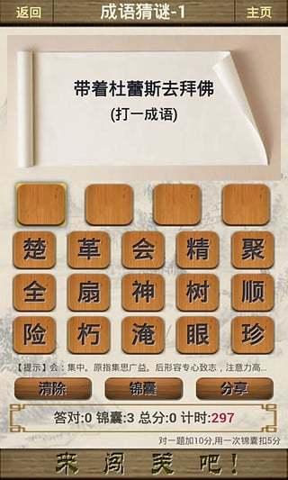 关于成语的游戏上述的文章中给大家做了详细的介绍,在闯关的过程中,只有有着充分的词汇量之后才能够闯关成功,如果喜欢玩成语挑战类型的游戏,那么不妨来感受一下吧,肯定有着很好的游戏乐趣。