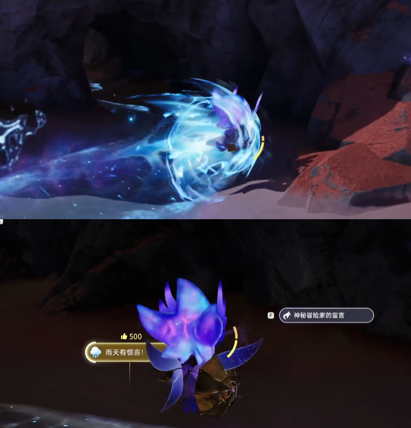 吊灯水母,在捕捉普通水母的地方继续向前走,会有一处山体,下方有一个洞口,洞口中有玩家的留言,等到雨天就可以收集到,这里就不展示形态了,大家可以留着这个最后收集。