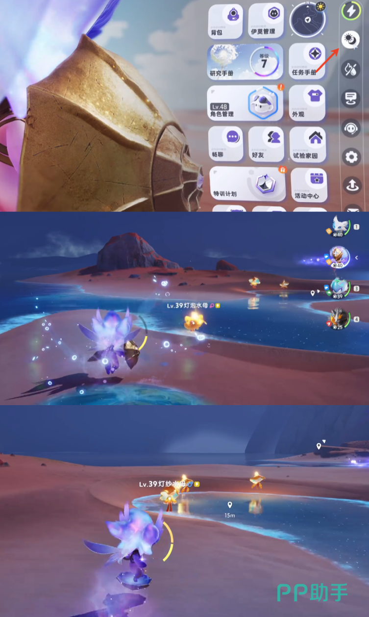 灯泡水母、灯纱水母,通过设置中的时间调整功能,把时间调到夜晚,然后来到河滩边,可以有很多灯泡水母和灯纱水母,注意从背后投掷道具捕捉成功率更高,或者好是先打到半残。