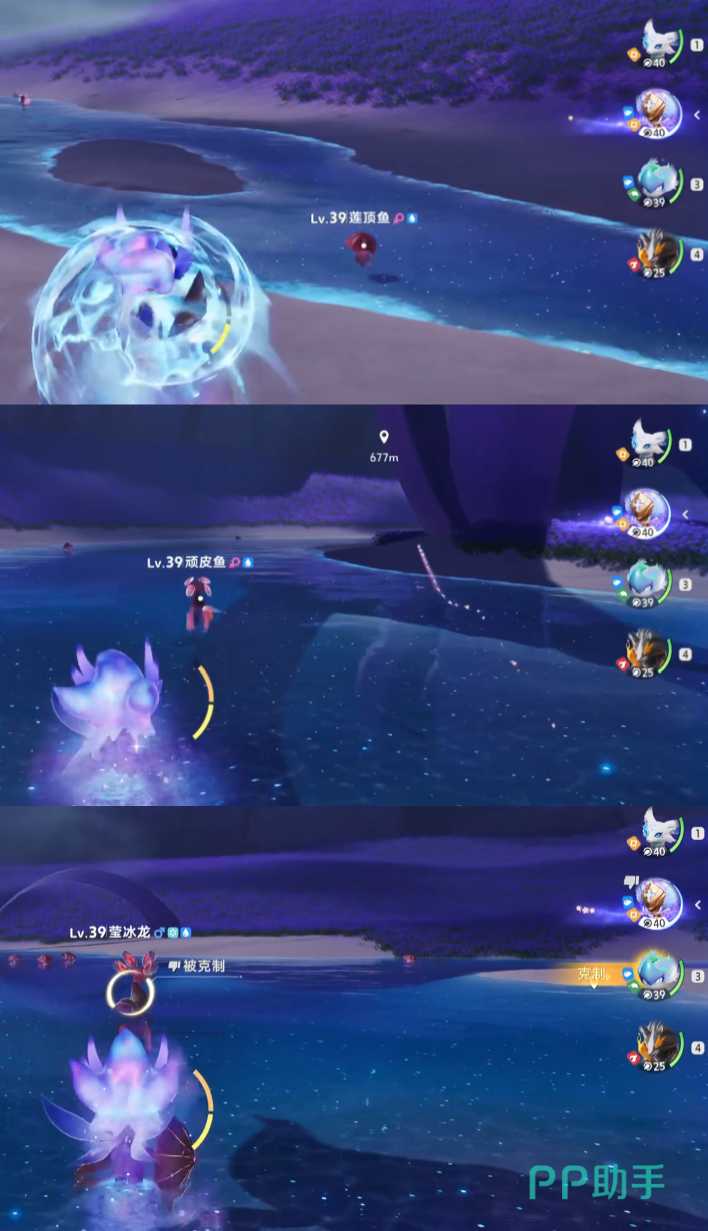 莲顶鱼、顽皮鱼、莹冰龙,在一片紫色花海中可以找到莲顶鱼,继续向前走可以发现顽皮鱼,水潭中间还有体型更大的莹冰龙。