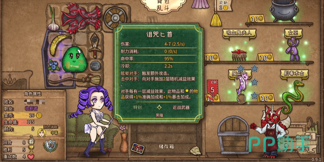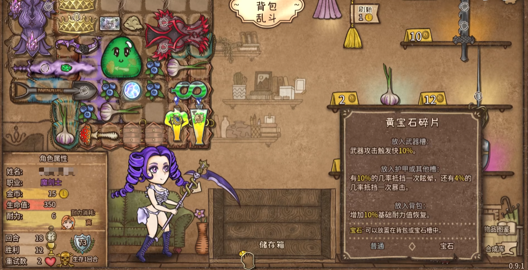 转职后要尽快拿到核心装备,黑暗剑,腐败护甲,月盾。黑暗剑能带来致盲效果,让敌方命中降低;腐败护甲能将神圣属性转变为黑暗,提高毒伤的收益;月盾有稳定的护甲回复能力,保证了持久战斗始终具有优势;每回合刷3次商店,优先买黑水晶,这样装备能尽快成型。