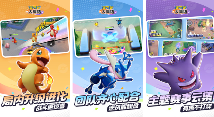 宝可梦大集结是唯一能实现局内进化的宝可梦系列游戏,可支持操控宝可梦推塔竞技快感十足,考验队友配合的游戏系统让整体交互性更高,多样的好玩赛事悉数登场让宝可梦爱好者心驰神往,充满惊喜和刺激的MOBA对抗元素可玩性更高,你也尝试与可爱的宝可梦一起合作拆爆对手水晶吧。