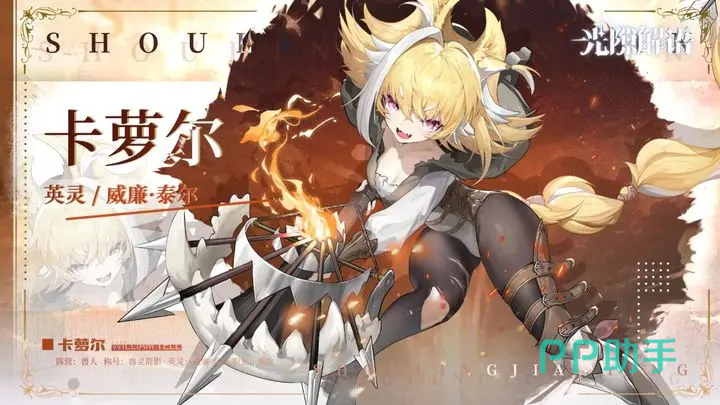 卡萝尔是兽人阵营的群上输出英雄,能迅速进行大范围的伤害,具有点燃的特性,能给敌方英雄在开局就大幅降低血量。1技能”分裂射击”,对一列敌方目标造成高额物理伤害,技能升级还能大幅提高伤害效果。2技能”燃烧兽夹”,给目标附加2层“点燃”,该目标行动后失去血量,后续有额外概率再附加1层。3技能“狩猎天赋”,攻击力和血量提高。4技能“埋伏”,战斗初始给随机的2名目标添加“点燃”,每回合有几率给随机的1名敌方单位附加该效果,升级后提升概率,附加的人数也增加。