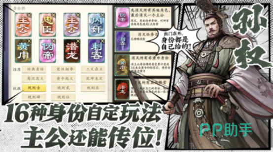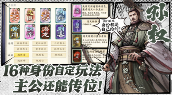 游戏中已经包括了各种丰富的中国历史名人,您可以选择到自己喜欢的英雄角色,可亲自扮演和其他的玩家共同大展身手,每位武将手中都会有三种特别奇特装备牌,玩家可通过自由搭配的方式将全新的效果叠加起来,还有16种不同的身份,比如主攻以及忠诚等等,每一种身份的背后都有着不同的操作方式,您可以根据自己的喜好自定义不同的身份的。