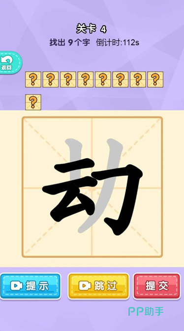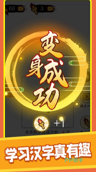 想以别样方式感受汉字“妙笔生花”的神奇魅力吗?这款游戏能满足玩家的期待,带玩家探寻汉字文化里鲜为人知的趣味玩法。游戏中,玩家可在给定的初始字形上巧妙添上一笔,让原本的字摇身一变成为另一个字,每一次落笔都仿佛开启了汉字基因的奇妙重组之旅。关卡难度循序渐进,从简单的独体字开始,逐步迈向复杂的合体字,解谜过程就像在洁白的宣纸上尽情挥洒笔墨,畅快淋漓。