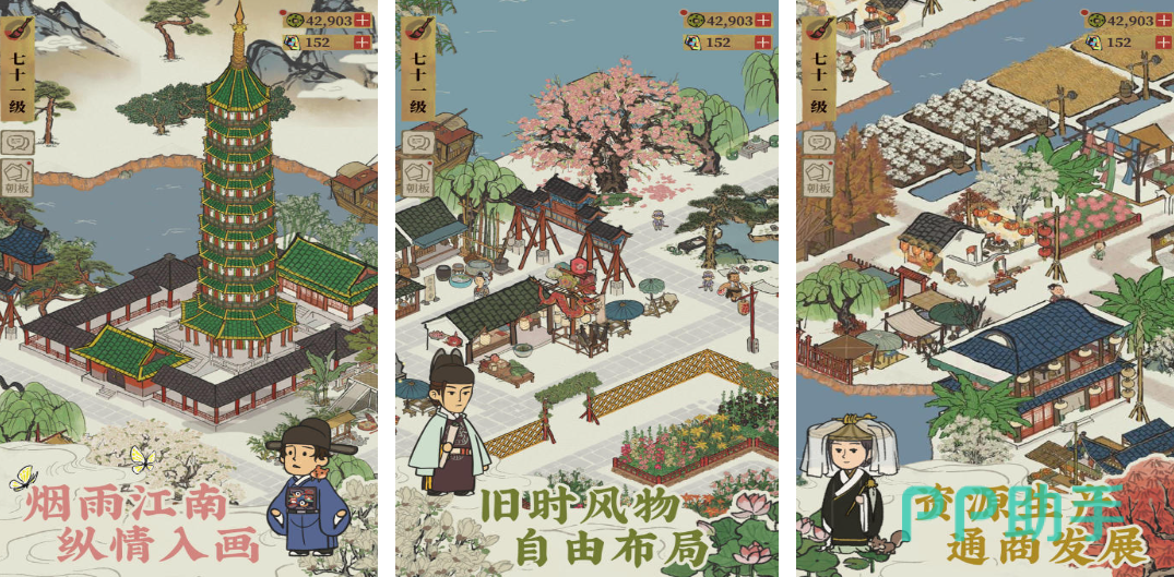 这是一款古风类型的经营游戏,玩家们将成为一镇县令,从招引百姓、开垦天地,再到修建设施、拓展小镇面积,慢慢地建立一个繁华的古镇。随着等级的提升,玩家们还会解锁不一样的区域,每个区域都有其专属产物和专属建筑,都非常有意思。