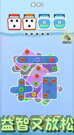 游戏中玩家需要观察螺丝与螺丝盒的鲜艳色彩并进行精准配对,每成功放置三个同色螺丝就能产生消除效果并刷新盒子颜色,简单的操作背后隐藏着考验玩家眼力与反应力的深度玩法,明快的画面风格与富有节奏感的消除反馈,共同构成了这款容易上手又极具挑战性的休闲游戏。