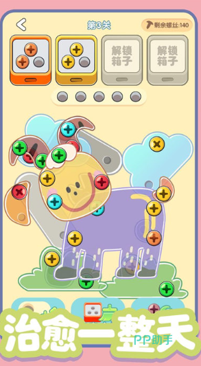 游戏采用渐进式难度设计,前期的简单几何图形会逐步演变为复杂的立体架构,每个关卡都会随机生成独特的螺丝排布图案。系统提供多种辅助工具,包括颜色高亮提示和局部放大镜功能,这些设计既降低了新手门槛,又能让玩家在破解机关时获得舒缓压力的成就感,随着关卡推进,螺丝密度和配色复杂度会显著提升,需要玩家运用空间想象力和策略规划能力来应对挑战。