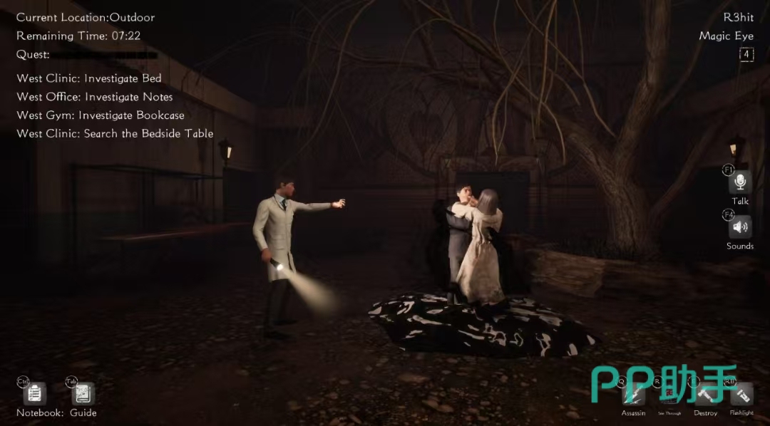 一款3d画面的沉浸式推理游戏,在你们之中,有的人看上去正常,其实已经被这座古堡的黑暗幽灵附体,他将悄悄地结束你们的生命。玩家在搜寻场景解谜破案的同时,还要尽快抓出那个伪装成正常人类的人,解决方法就是尽可能完成任务,但是在这幽暗的周围,处处充满危险,被恐惧填满。游戏十分刺激,写实逼真的场景刻画,处处都刺激着你的感官,胆小的玩家不要被吓到哦。