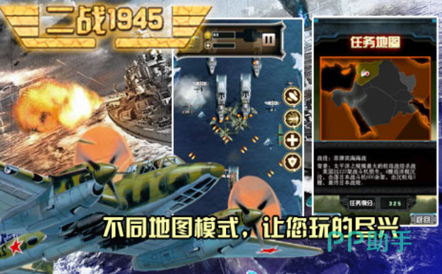 这是款能自定义选择国家的竖屏操作空战类游戏,具备不同的战略地图和超多模式可玩性大大提升,火花四射的空战景象带来的视觉享受别具一格,时间线进入了1945年玩家也可参与个性化的战役,超多二战老版本的战斗机可尽情解锁参与空战,任务系统多样能提供给大家很多免费的配件。