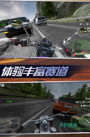 本作品作为展示玩家终极技术的竞速游戏,以其高清的图像设计和真实的3D赛道闻名世界,玩家可以享受激烈的国际级大赛。系统塑造了以中国风为核心的主题赛道,玩家可以在全球知名摩托品牌里任选型号,无论引擎还是外观涂色都可以个性打造。本游戏支持单人闯关享受比赛,也能与数十人一起开启混战模式,在宽广的赛道中利用技术与策略表现能力。