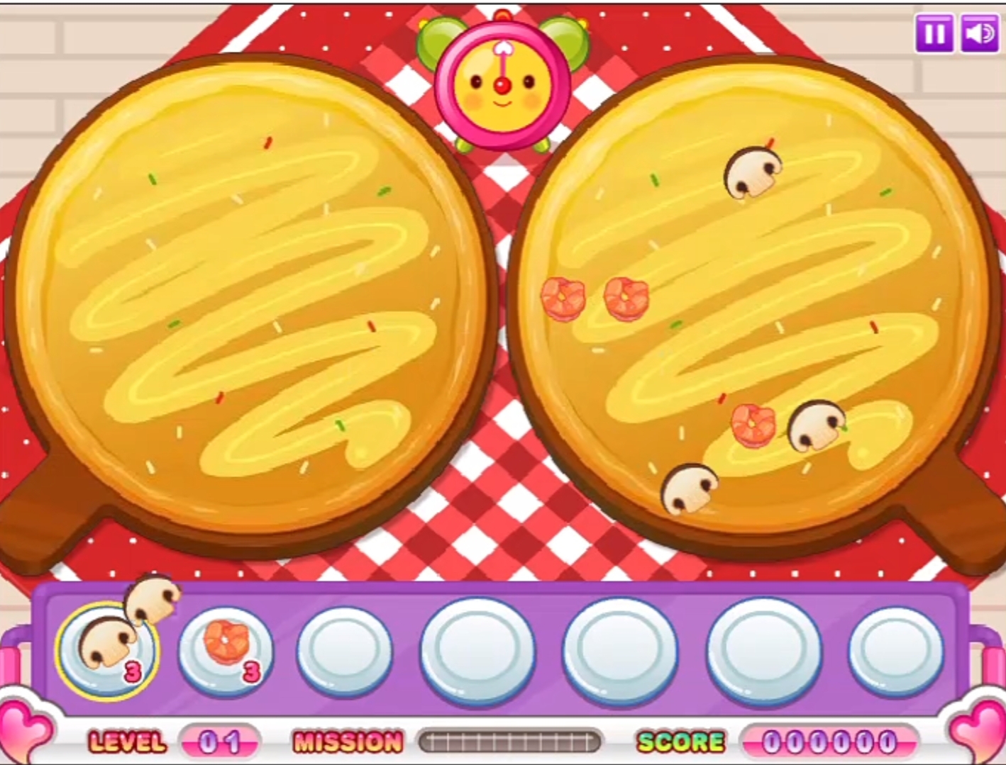 万能的阿sue又开了个披萨店,但是客人们要求有点多,脾气不太好,不愿意给太多耐心,你要帮助阿sue制作出客人们想要的披萨。披萨店会逐步升级,门店设备和食物种类会增加,但是客人们也越来越多,一旦超过他们等待的耐心,客人就会离开了,所以手速一定要快哦。