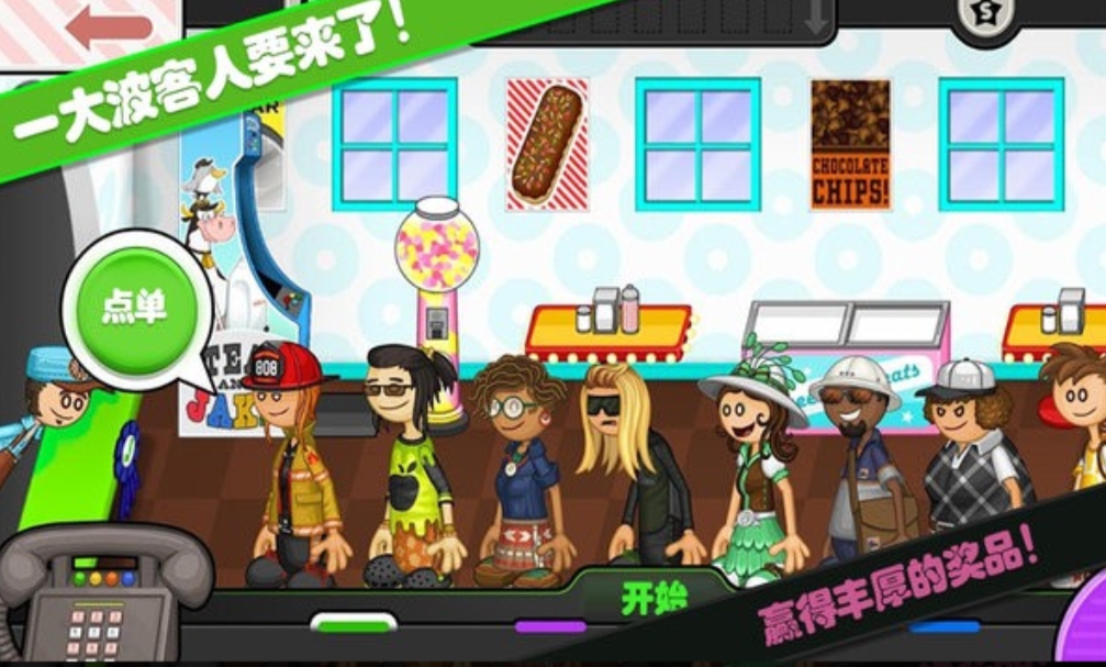 你在这个小镇经营一家店铺,一大波客人光临,你要为这些兴奋的客人制作对应的甜品。不只有甜甜圈,还有冰淇淋等,根据不同客人的要求加上糖衣,馅料等,在限定时间内完成端给客人。随着门店等级越来越高,还会有客人打电话订单,你需要接听电话并让司机配送。游戏是经典美式画风,现在看也依然复古风满满充满回忆。