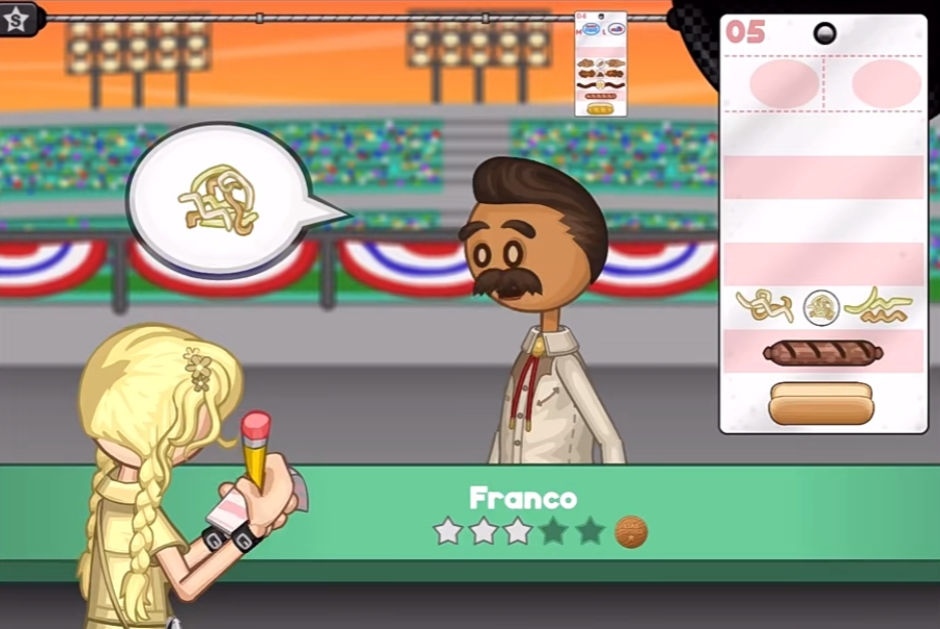 老爹系列的游戏也是童年回忆。需要玩家根据顾客的要求和口味及时制作热狗,每个客人的特点都不一样,有的客人要求简单,有的客人难以攻克,有非常多要求,给的等待时间也非常短。不过客人难度越高,代表完成之后的经验奖赏越丰富,升级之后将店铺逐渐扩大,用制作热狗的收益来装饰店铺,升级设备。直到现在游戏也依然在推出适应各种设备的新版本,可见人气之高。