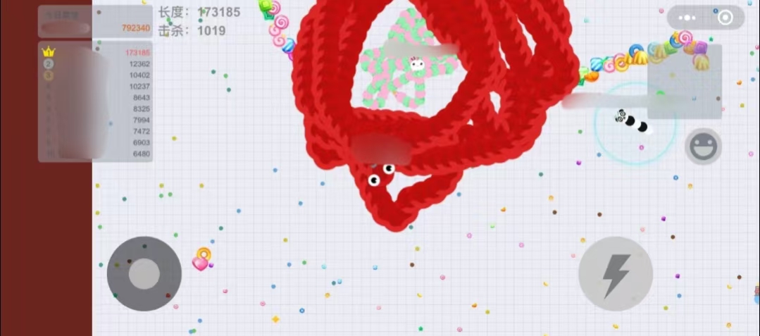 你是一条贪吃的小蛇,你要和其他蛇抢夺吃下画面上的圆点,吃得越多身体越长,爬行速度越快,只要其他蛇撞到你的身体就会消灭,当然你也不能撞它们或碰到边缘。这是一个充满绞杀快乐的游戏,不仅要快速抢夺圆点,还可以跟其他蛇斗智斗勇,还要提防时不时的回马枪。蛇的种类也花样百出,游戏画面缤纷多彩,欢快但又刺激。
