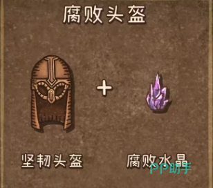 腐败头盔:主要是通过腐败水晶还有坚韧头盔去合成,这就是一个传说等级的头盔。在战斗刚刚开始时就可以拥有5秒的减伤,在这5秒的时间内所受到的伤害全部都可以降低25%,是一个相对比较全面的头盔。