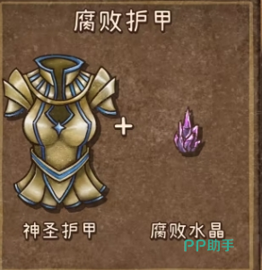 腐败护甲:是通过腐败水晶,还有神圣护甲合成,同样也是一种黑暗物品,配合其他的黑暗物品,就能有效减少敌方的减益效果,提升我方的成功几率。