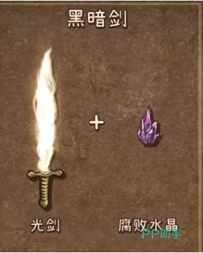 黑暗剑:主要是有腐败水晶,还有光剑组合在一起。这两种物品获取难度还是比较高的,需要进入到中后期探索才能够入手。不过入手的价值还是比较高的,伤害数值比较高,在面对大部分的敌人时都能迅速的将其击败。