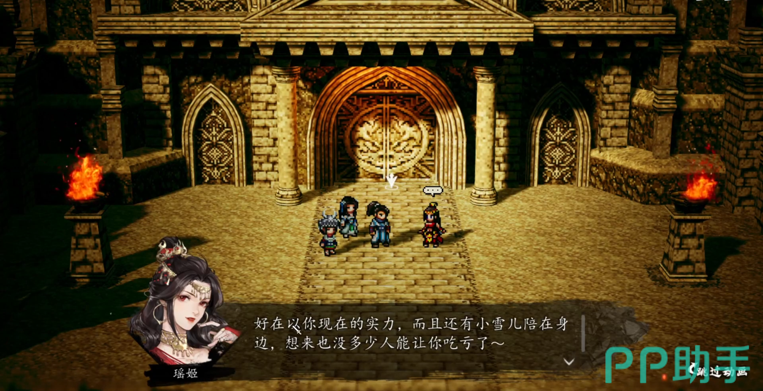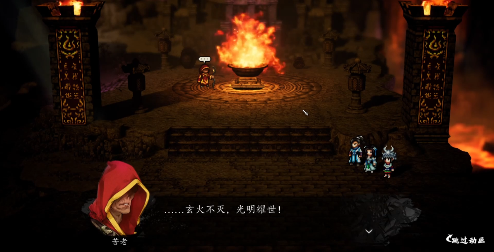 回到入口,我们一直往前走,来到玄火教主殿内,直接与玄离对话,才得知他想傀儡瑶姬,掌控整个玄火教,进而统治天下。我们主角团也是废话不多说,聊完之后便直接进入BOSS战了。