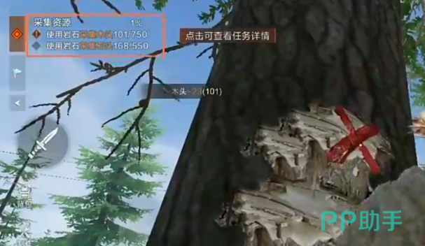 开局生存:在刚刚进入游戏之后,玩家是赤手空拳,什么都没有。需要做的就是在短的时间收集木材石头以及出血的资源来制作更多的工具,通过砍伐以及敲碎岩石,还有捡一些杂物才能够制作出开始的工具,那就是石斧和石镐,因为接下来的建造打下一定的基础。