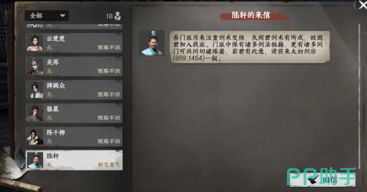 在所有可登顶的门派中,太初剑宗堪称剑修第一圣地。入门条件为剑术达到50,随后会收到飞鸽传书指引,前往859,1454与陆轩对话完成入门拜师流程。此后,通过贡献、完成悬赏以及每达25、50、75的好感度晋升亲传弟子,最终可获得奇级剑法【千锤百炼神门十三剑】。待完成保卫宗门任务后,继续跟随任务找到季凛,即可成为掌门,并习得绝级剑法【九剑】。