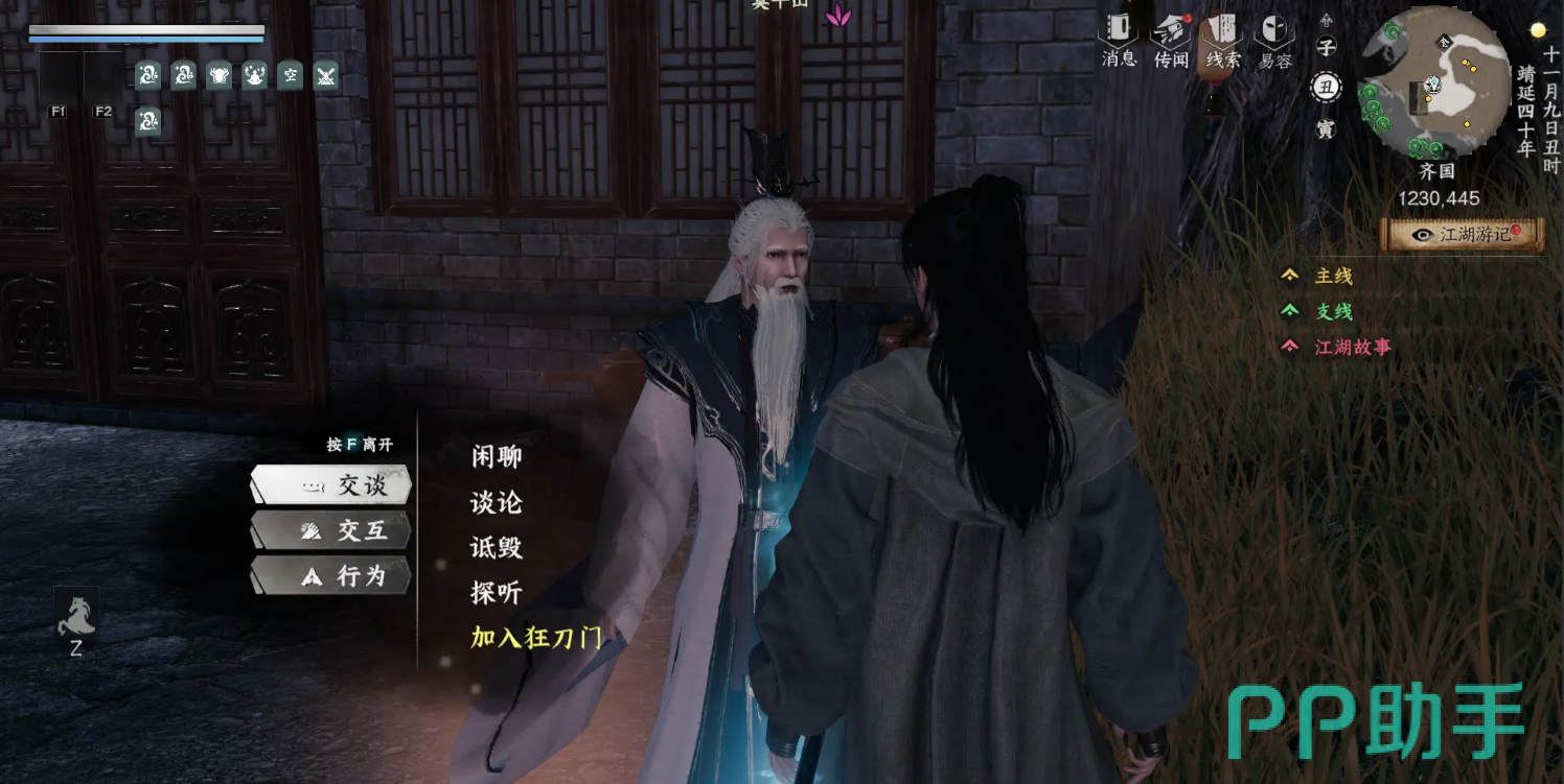 绝剑门与狂刀门各自为剑与刀之巅。绝剑门需要先完成下山村民的弟子救援任务获得推荐信,才能进入1364,624与云婧对话加入。晋升路线依靠好感度+剑术+道学要求层层递进,成为掌门后可掌握地级剑法【叁霸剑】。狂刀门的入门则是前往1230,445接受莫千山的试炼,完成后加入,并同样通过好感与任务逐级晋升至掌门,最终可获得地级刀法【傲寒六诀】。若完成刀剑凌云怨任务并同时担任两派掌门,可开启合并为【狂刀绝剑门】的隐藏剧情,集两派资源于一身。