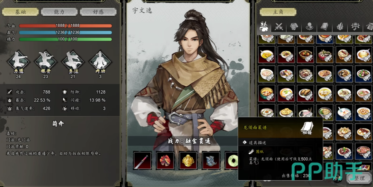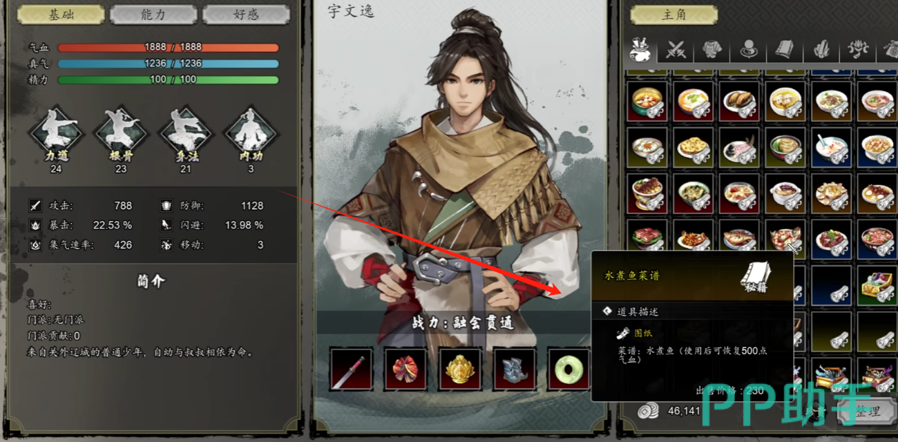 恢复类的食物道具包含有佛跳墙、水煮鱼、糖醋鱼、龙须面、松鼠鱼,玩家需要分别寻找到NPC侯酒、王军、王氏、吕侯、魏存续父子,通过获取好感度,来直接取得这些配方。