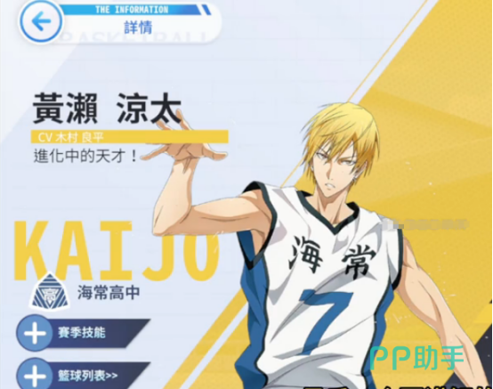 黑子的篮球街头对决根据日本人气动漫黑子的篮球改变而成,拥有细腻的经典剧情,所有玩家都能享受无比热血的篮球战场。游戏中有很多人气极高的角色,比如黑子哲也,火神大我,黑子的篮球街头对决黄濑怎么样?针对于动画当中的众多角色都进行了高度还原,小伙伴们可自由选择并培养操控这些角色在无比热血又非常刺激的篮球赛场当中成功获胜,享受指尖操控的无限乐趣,接下来为大家详细介绍此角色的具体技能。