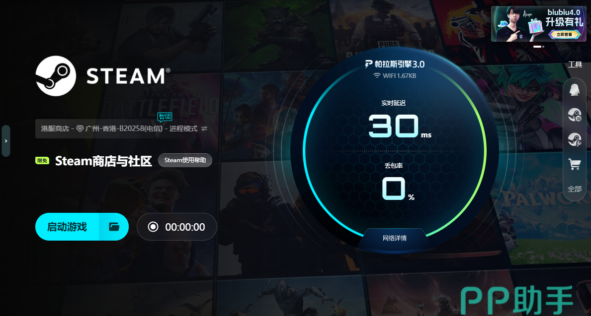 那么,有没有能达到这样效果的加速器?答案是有,比如推荐给大家的近期才进行全新升级的biubiu加速器。biubiu把彻底解决外部服务器连接问题作为重点,依靠大厂资源,在海外部署了大量的游戏专用的加速通道,以技术的方式扩大游戏数据传递渠道,同时biubiu还有领先的智能加速技术,通过技术手段定位每一款游戏的服务器物理地址,再以专用通道的方式 ,将玩家游戏和服务器之间用专享通道进行直连,每每进行游戏的时候都会产生很多的游戏数据,甚至是缓存,这就需要该软件通过多个渠道传送,当网络不稳定时,还会采用多路发包的方式进行发送,确保数据完整传输。当然对于本地网络,biubiu也有了全新手段,引入了帕拉斯引擎3.0技术,以实时补发数据的方式,强化本地网络和服务器传输的效率,提升响应时间。