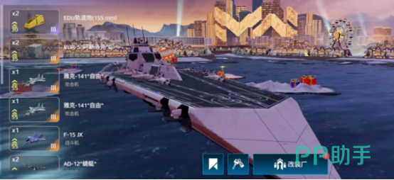 作为输出能力相当出色的航母,在具体的武器配置这方面,也是很多玩家感兴趣的话题可以配置主炮双联装EMRG120毫米主炮,整体的伤害以及射程都有着非常优越的表现。在战斗机这方面可以搭载f35c战斗机,拥有非常卓越的输出效果。Mh62反潜直升机,这属于比较灵活的作战单位。在防御系统这方面可以匹配mk40一垂直发射系统,拥有着相当庞大的防空范围,激光防空系统在3公里内快速拦截导弹并进行反击。选择好相应的配置,参与到战斗当中能够称霸海域。