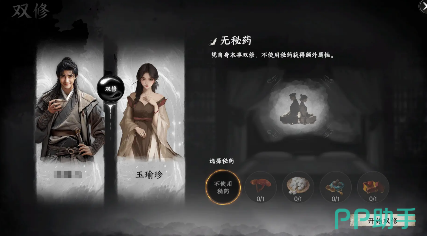 双修府的另一大亮点,就是双修玩法。加入门派后,你可以与门派成员进行双修。达到一定好感度后(比如20点),就可以进行双修,消耗精力后,你将获得各种属性的加成。