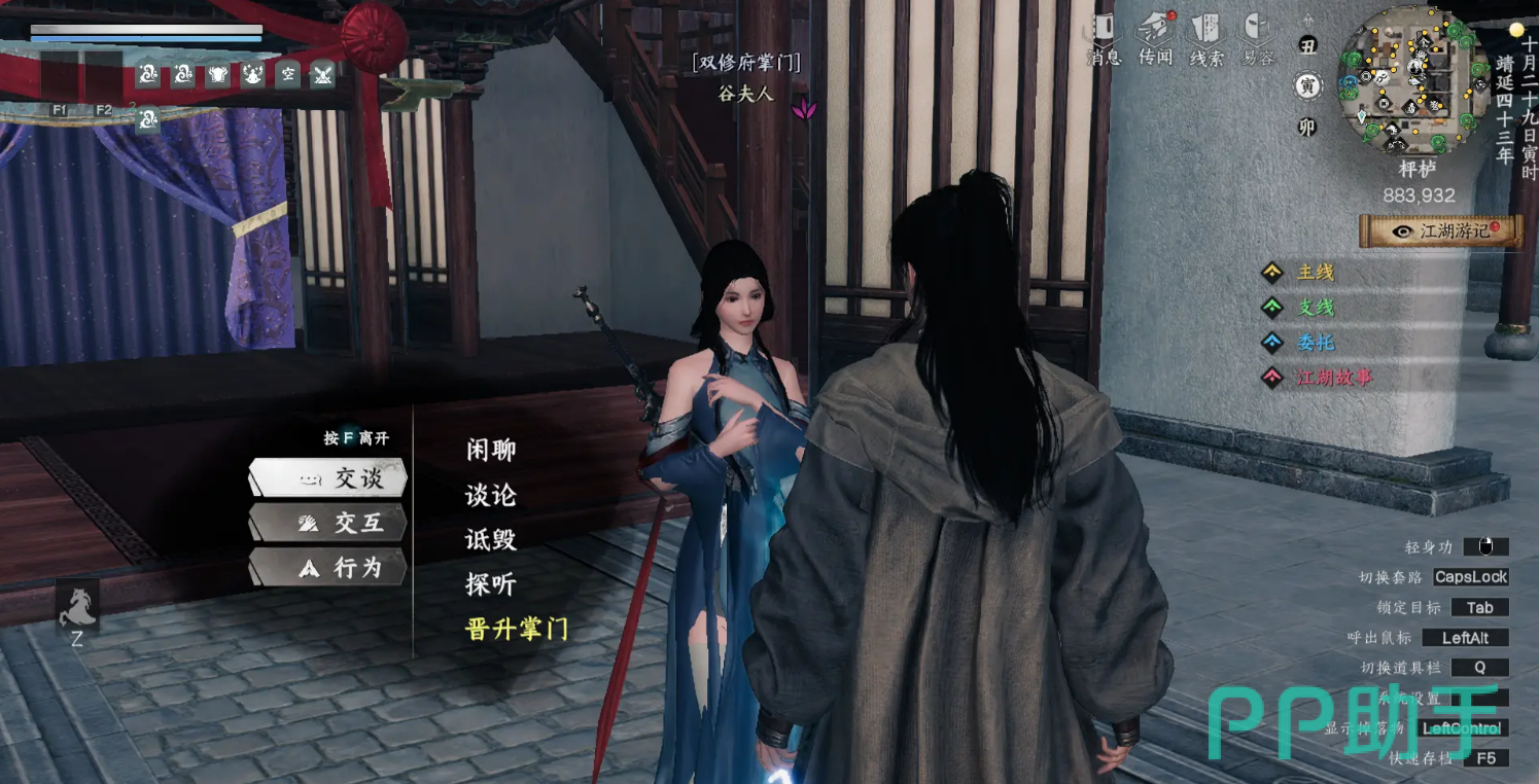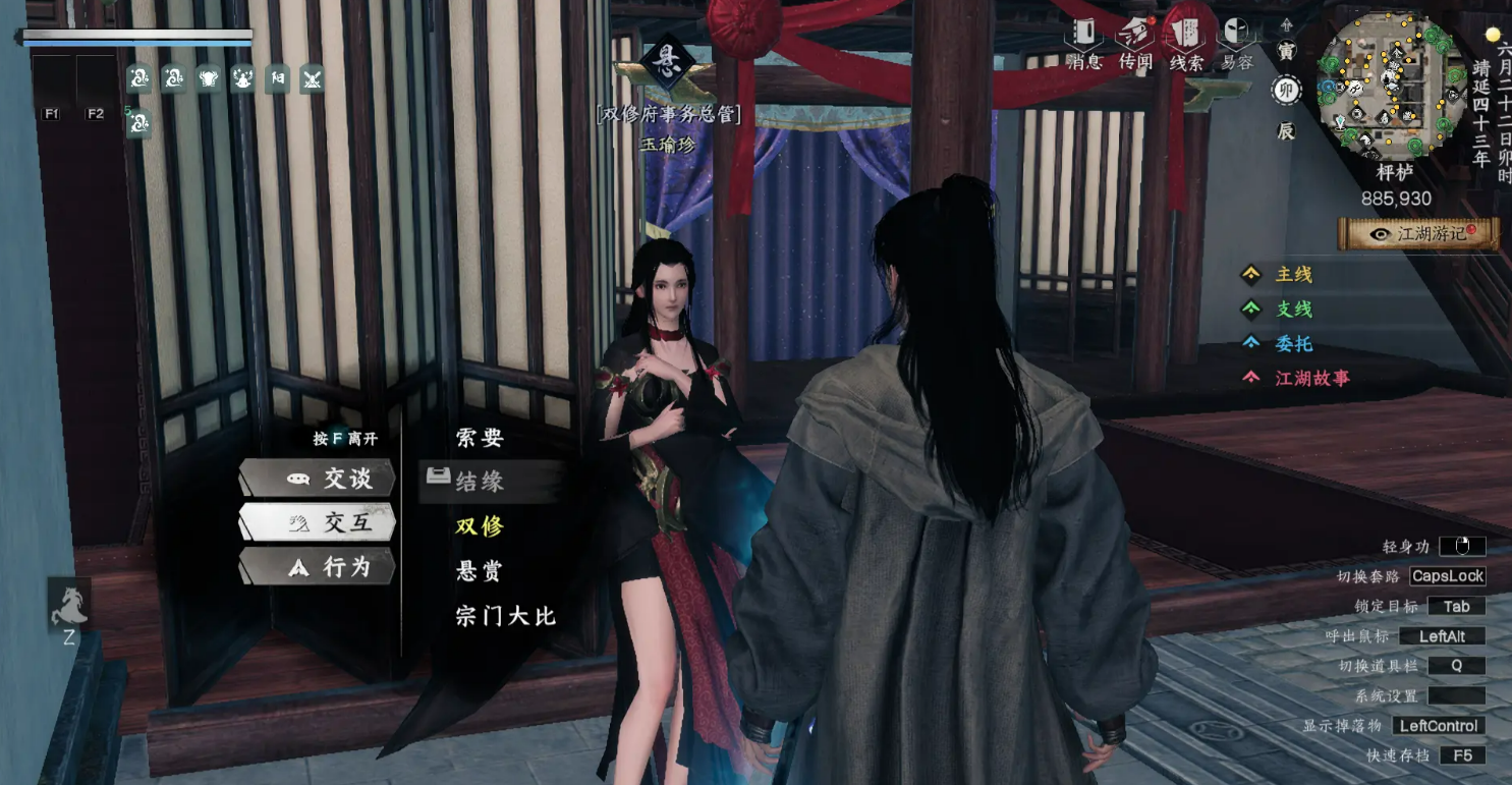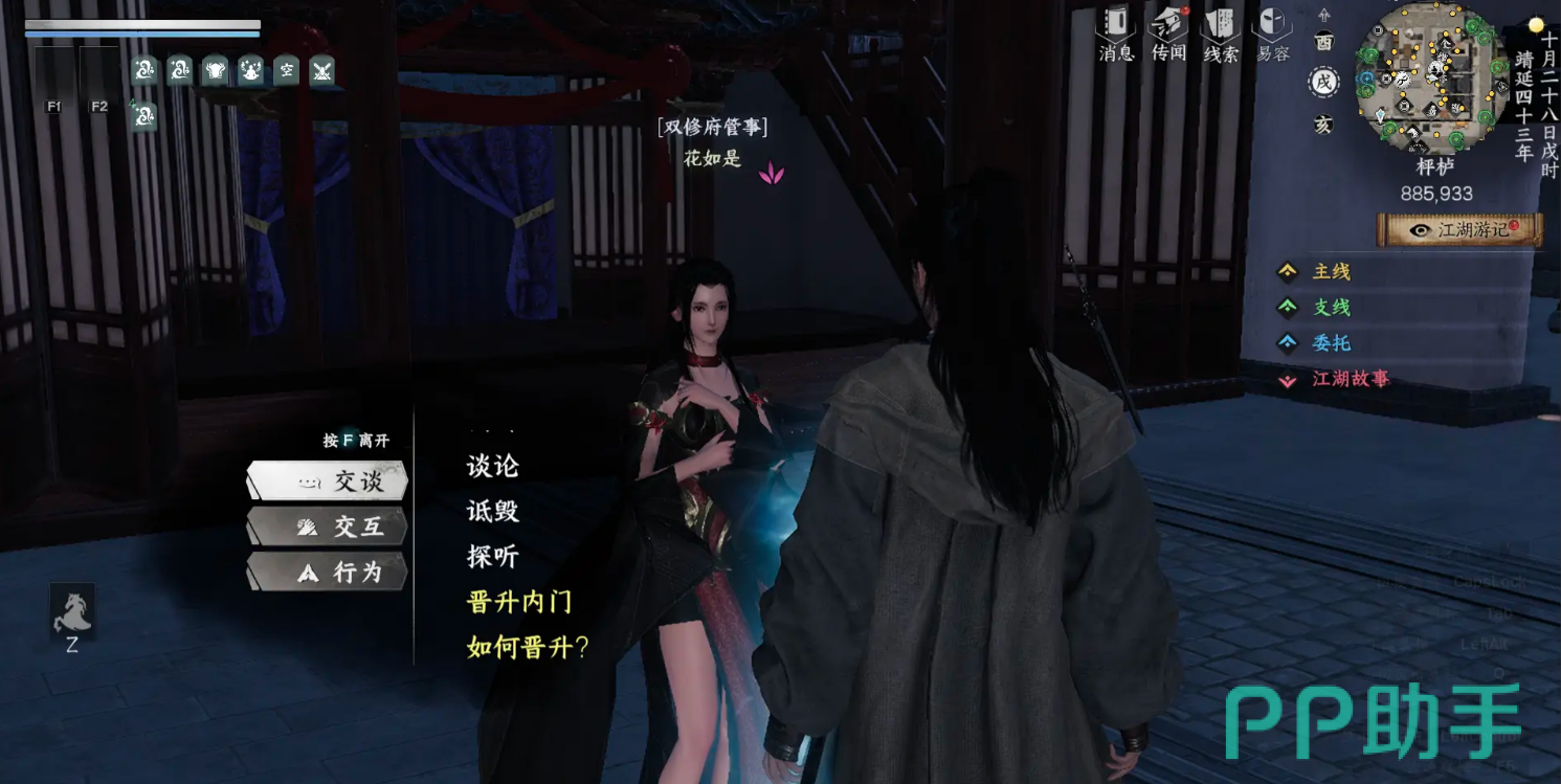 另外,双修府内部的事务总管在885.930这里,会为你提供一些悬赏任务。完成这些任务后,你会获得双修府令牌,这不仅是你晋升的通行证,还能解锁更多隐藏任务。