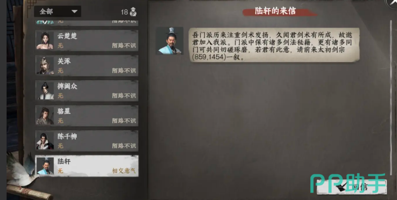 想要加入太初剑宗?那可不是随便说说的。你得先把剑术提升到50,飞鸽传书到手后,去陆轩那里一顿对话,完成一系列支线任务才行。等到好感度逐步提升,你就能接到晋升的任务了。你需要不断地和门派里的长辈互动,完成他们的挑战,才能最终获得那绝世神功。
